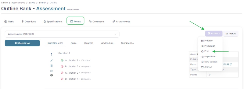 How to Print a Question Bank/Assessment Form to PDF