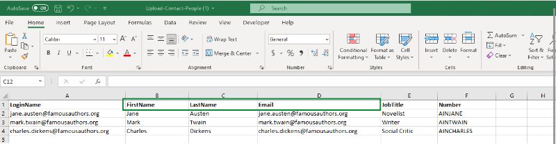 Select the CSV UTF-8 (comma delimited) (.csv) file with the contact details of the users you would like to add. Your upload file must be a spreadsheet saved as a CSV UTF-8 (comma delimited) (.csv) file.