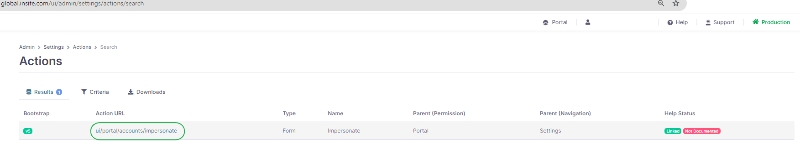Select the Actions counter and under the Criteria tab search for Action URL = impersonate Click on the Action URL (ui/portal/identity/impersonate)